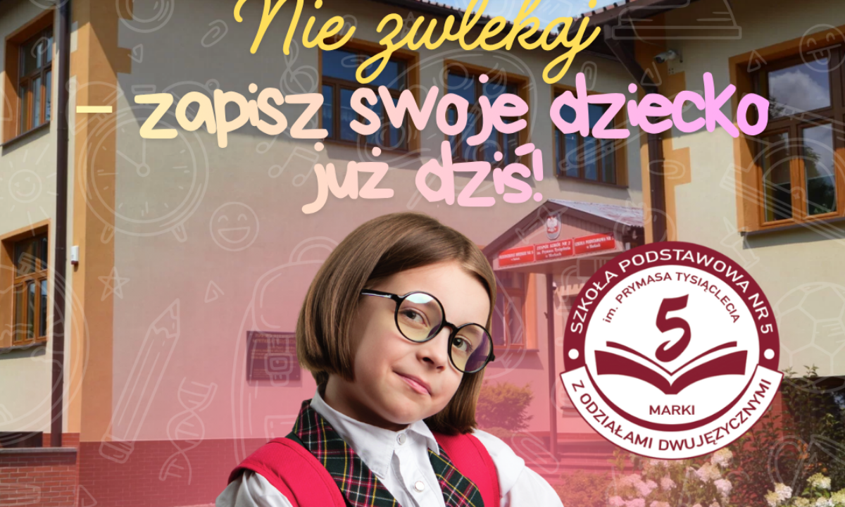 📣 Zapraszamy na Dzień Otwarty!📆 27 maja 2026 r. 🕓 Godz. 16:00📍 Szkoła Podstawowa nr 5 w Markach (ul. Wczasowa 5) Podczas spotkania:✅ poznasz nauczycieli i uczniów✅ dowiesz się, jak wygląda ...