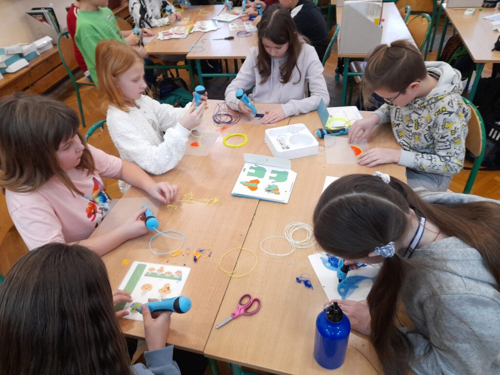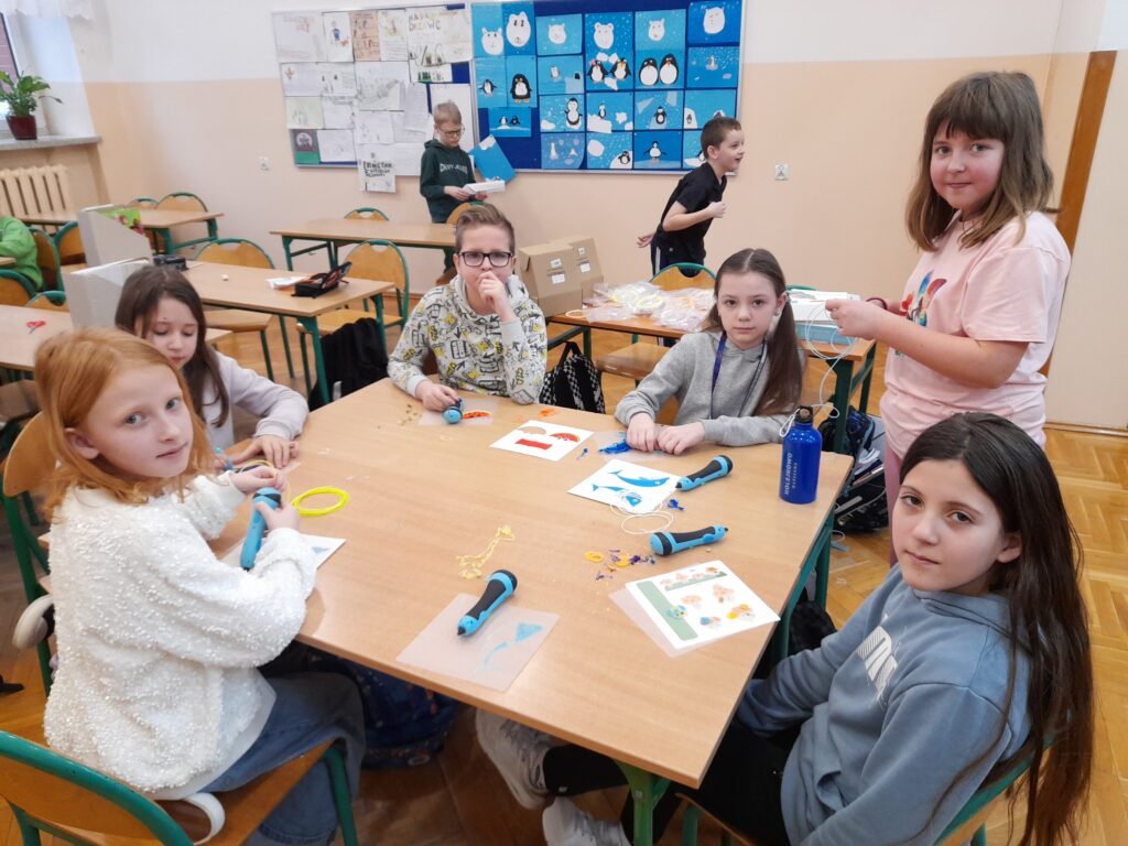 Uczniowie klasy 3a mieli okazję przenieść się w świat nowoczesnych technologii. Podczas zajęć dzieci korzystały z długopisów 3D, rozwijając swoją kreatywność, wyobraźnię przestrzenną oraz zdolności manualne. Powstały niezwykłe projekty – od kolorowych figur po własne, autorskie konstrukcje.