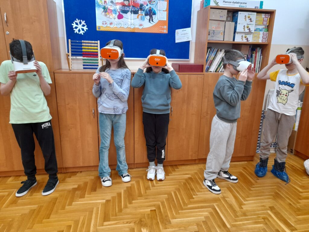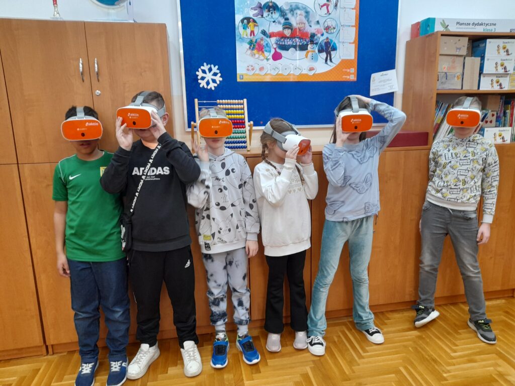 Nie zabrakło również emocji podczas pracy z okularami VR. Dzięki wirtualnej rzeczywistości uczniowie mogli zwiedzać ciekawe miejsca, poznawać świat z zupełnie nowej perspektywy i uczyć się poprzez doświadczenie.