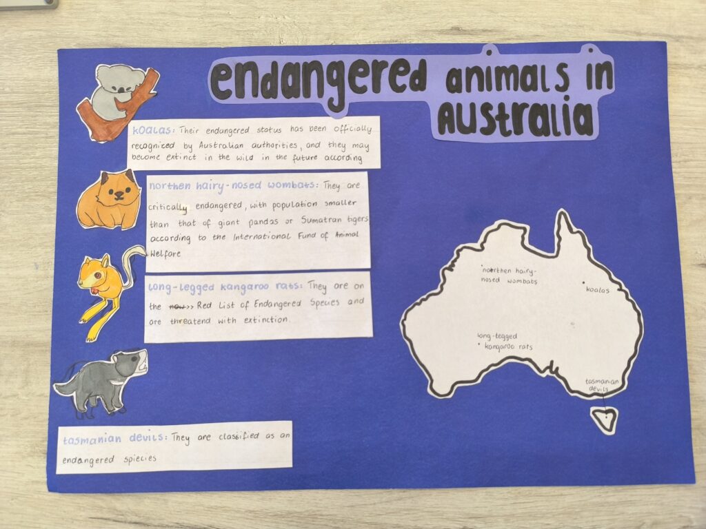 • Klasa 8c przygotowała  projekty dotyczące ochrony środowiska oraz zagrożonych gatunków zwierząt na świecie.