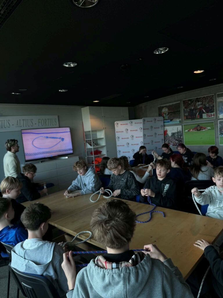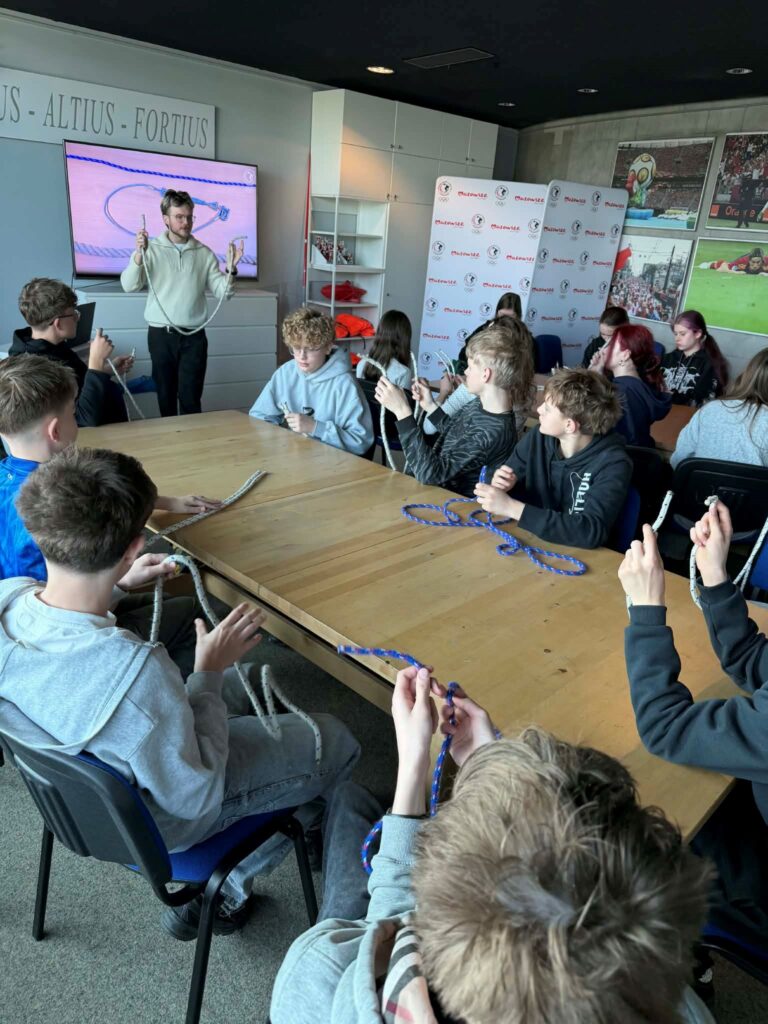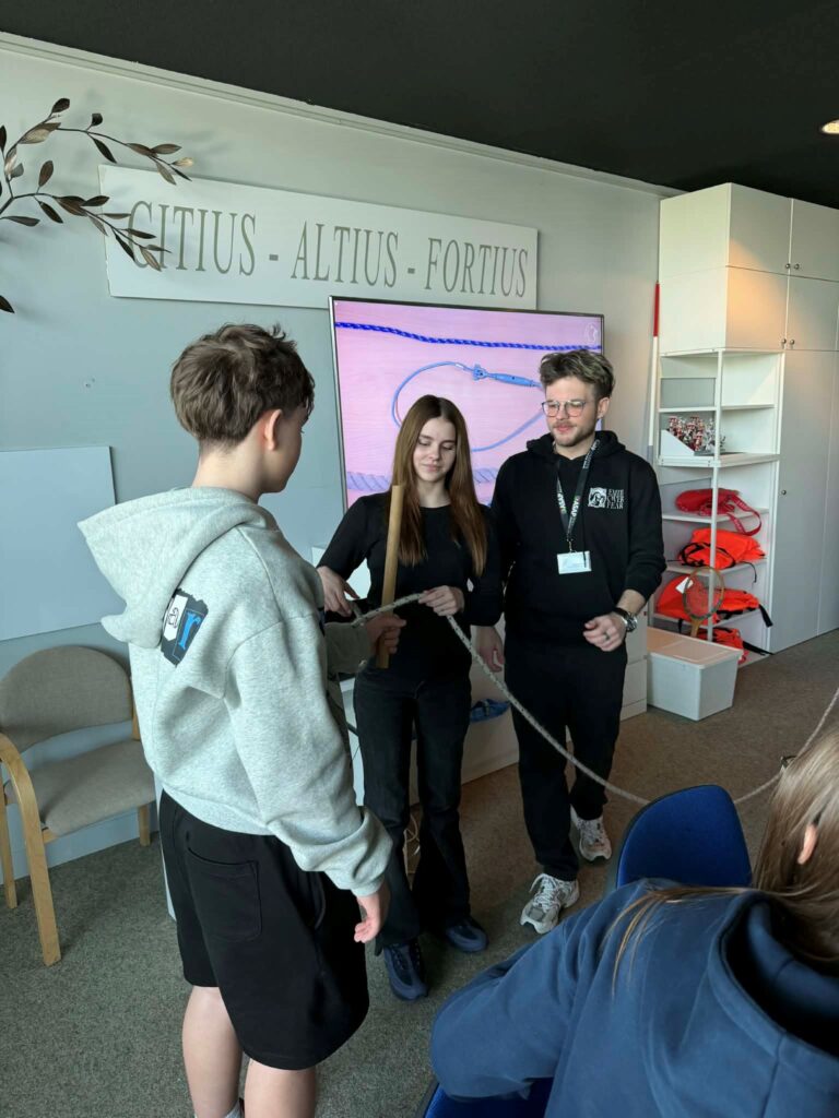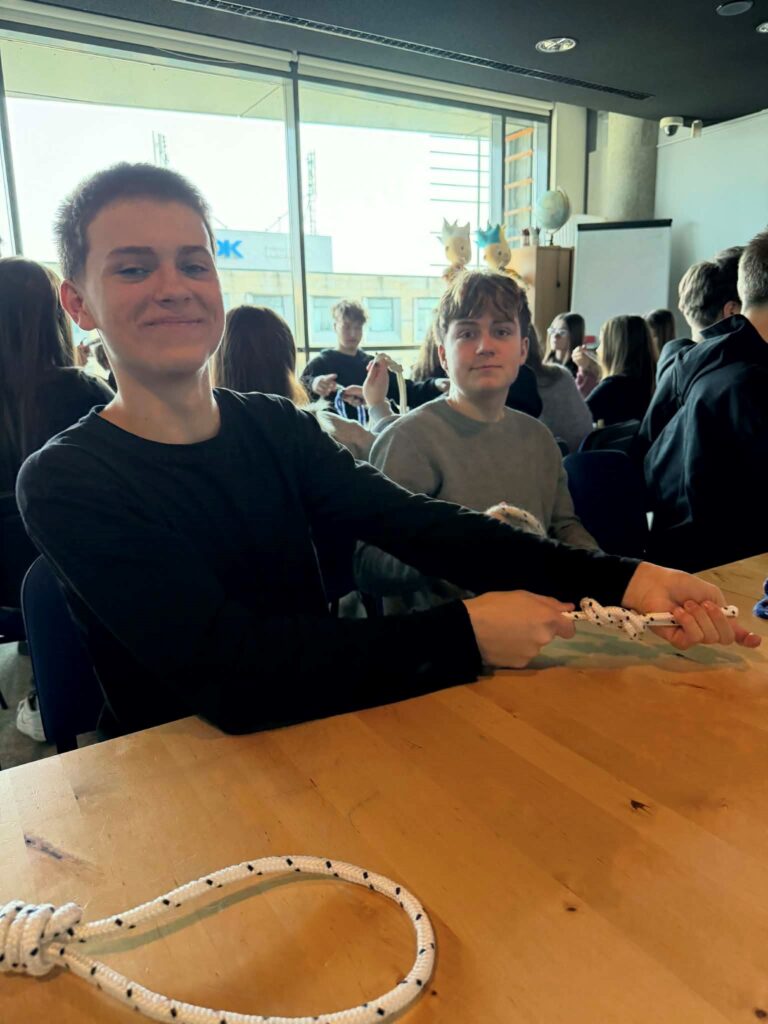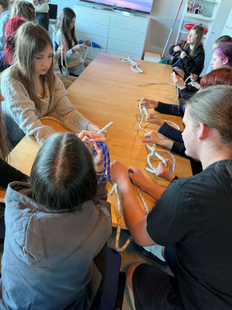 Następnie odbyła się lekcja „Węzły i supełki”, podczas której dowiedzieliśmy się, w jaki sposób wiązać najpopularniejsze węzły żeglarskie oraz do czego służyła lina kiedyś i dziś.